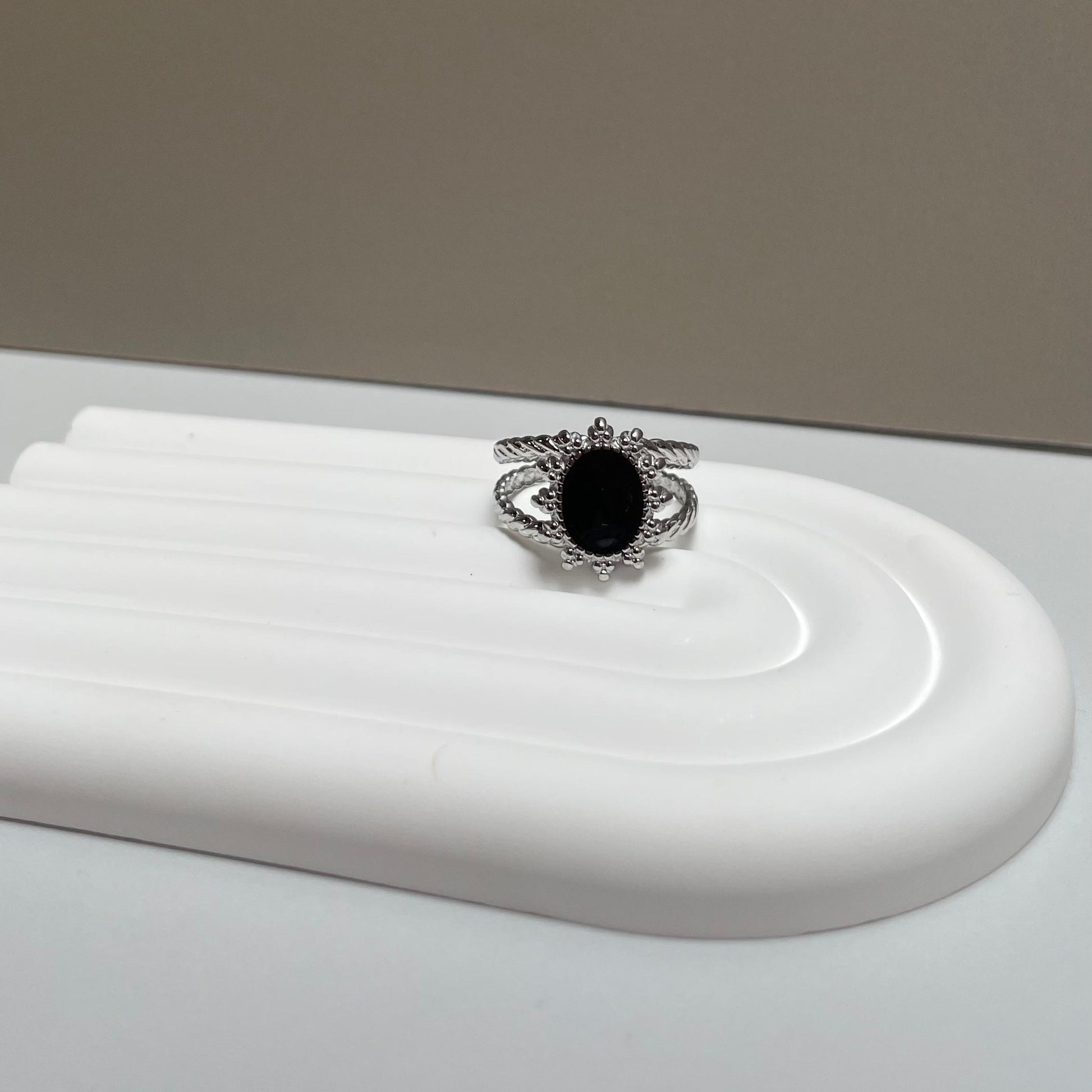 ¡Fiel a tu estilo! Combina tu outfit con este hermso anillo con piedra negra mate.