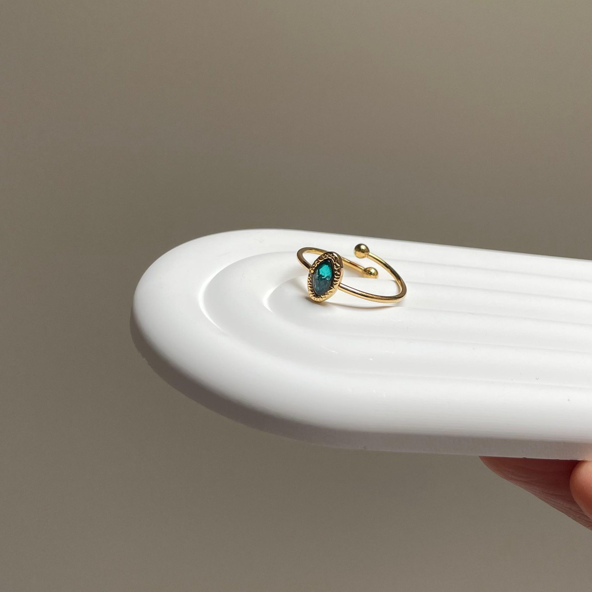 Delicado anillo con base fina y piedra color celeste turquesa.
