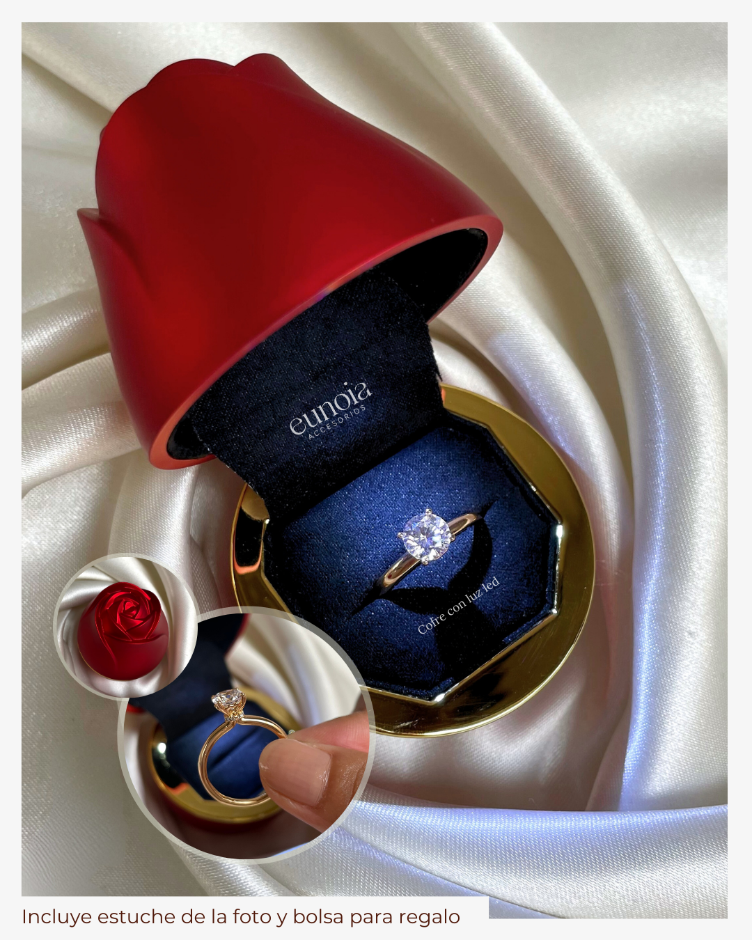 Tamaño regulable. Sale con hermoso estuche metalizado en forma de rosa con luz led.