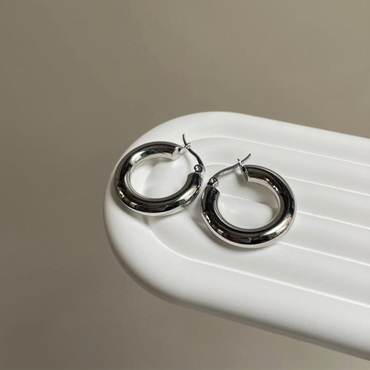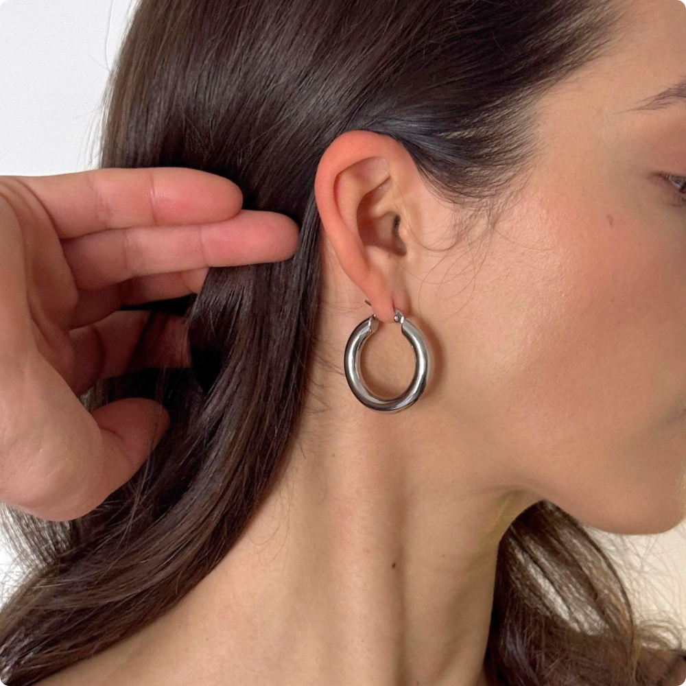 ¡De moda! El plateado ha vuelto, y si eres de ese Team no pueden faltarte unas argollas básicas como estas!.