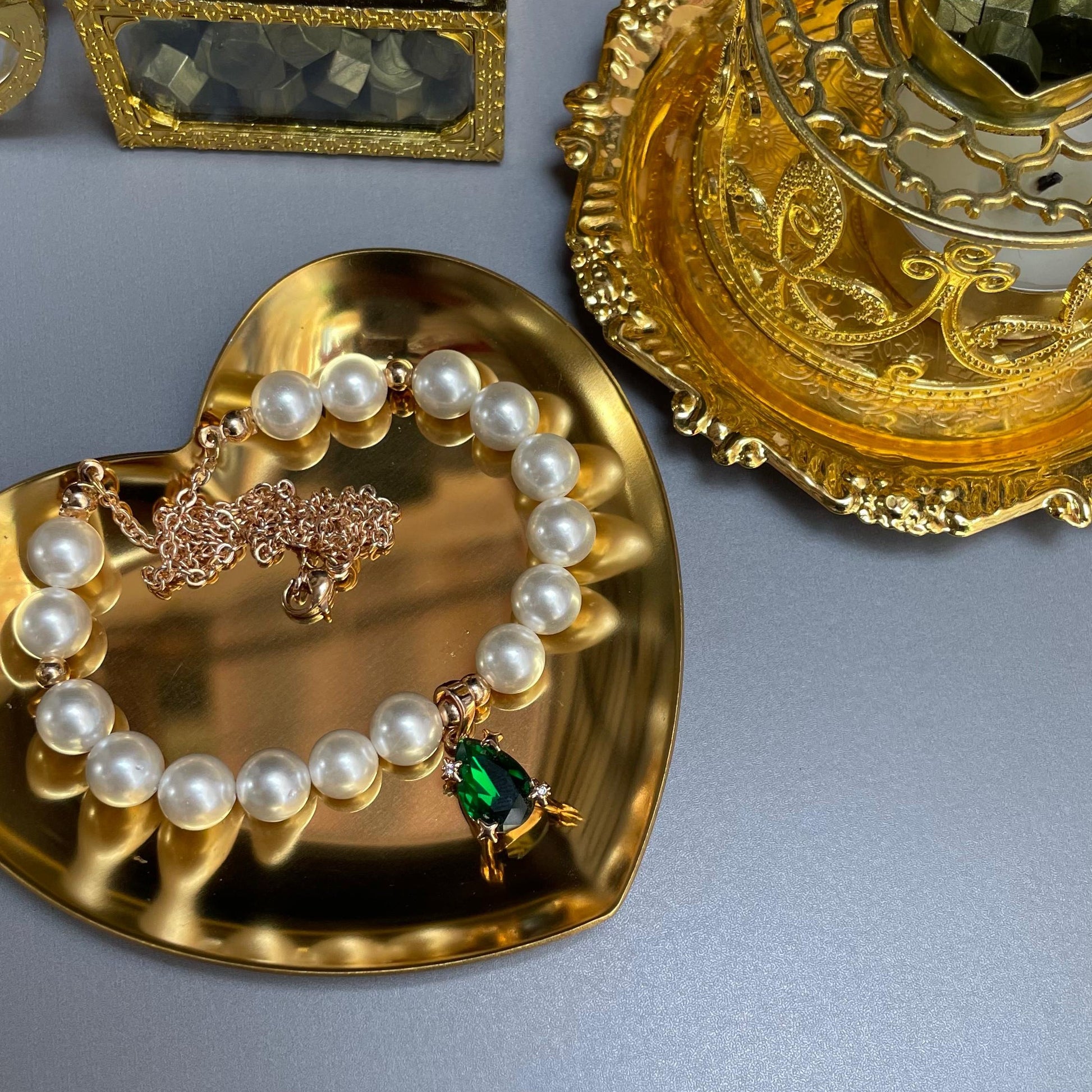 Bellisimo collar con perlas checas calidad A1 y dije verde esmeralda. Terminaciones y dije con baño de oro rosa 18k.
