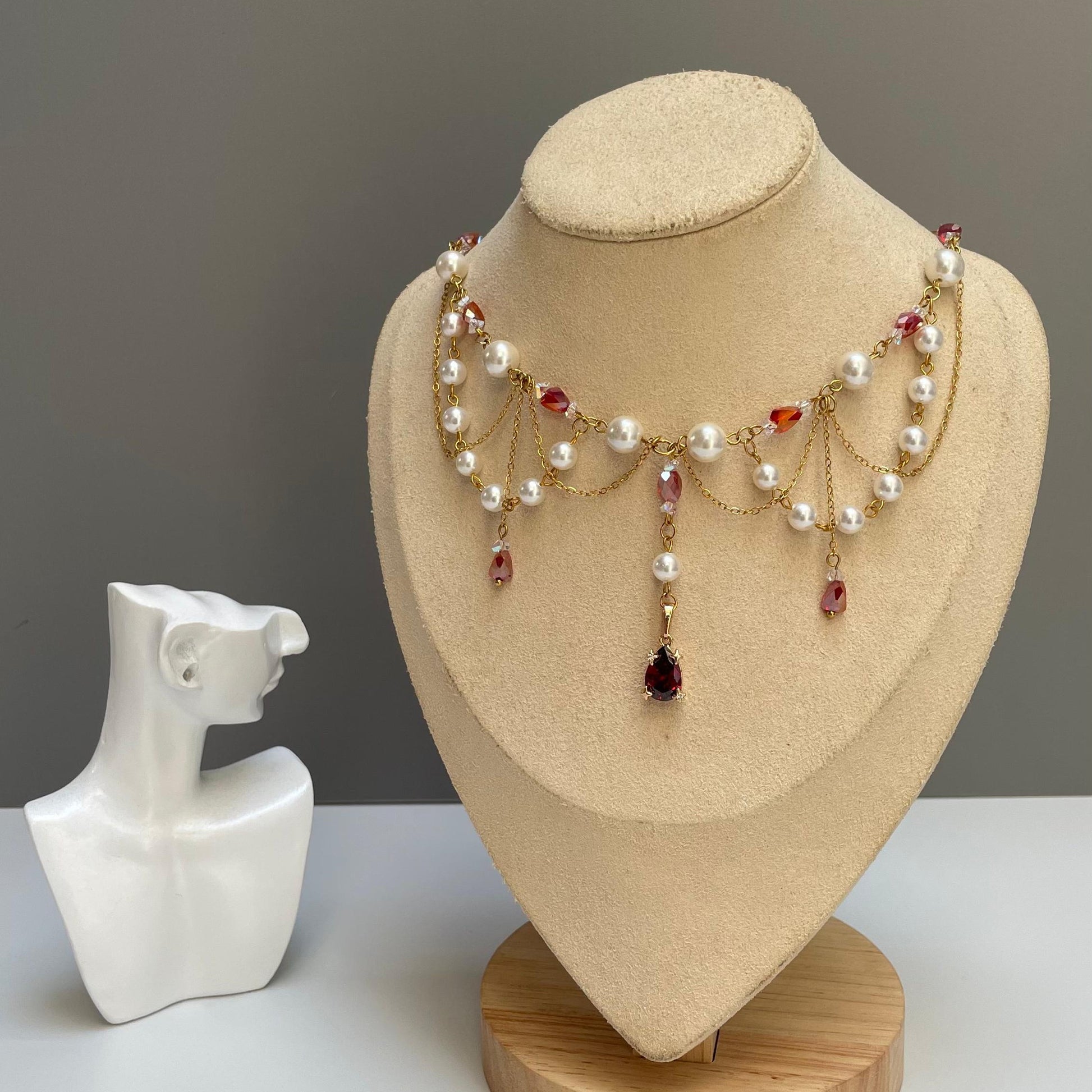 El arte se convierte en joya. Hermoso diseño de collar elaborado con perlas checas, muranos facetados y acero inoxidable. Estilo Renacentista.