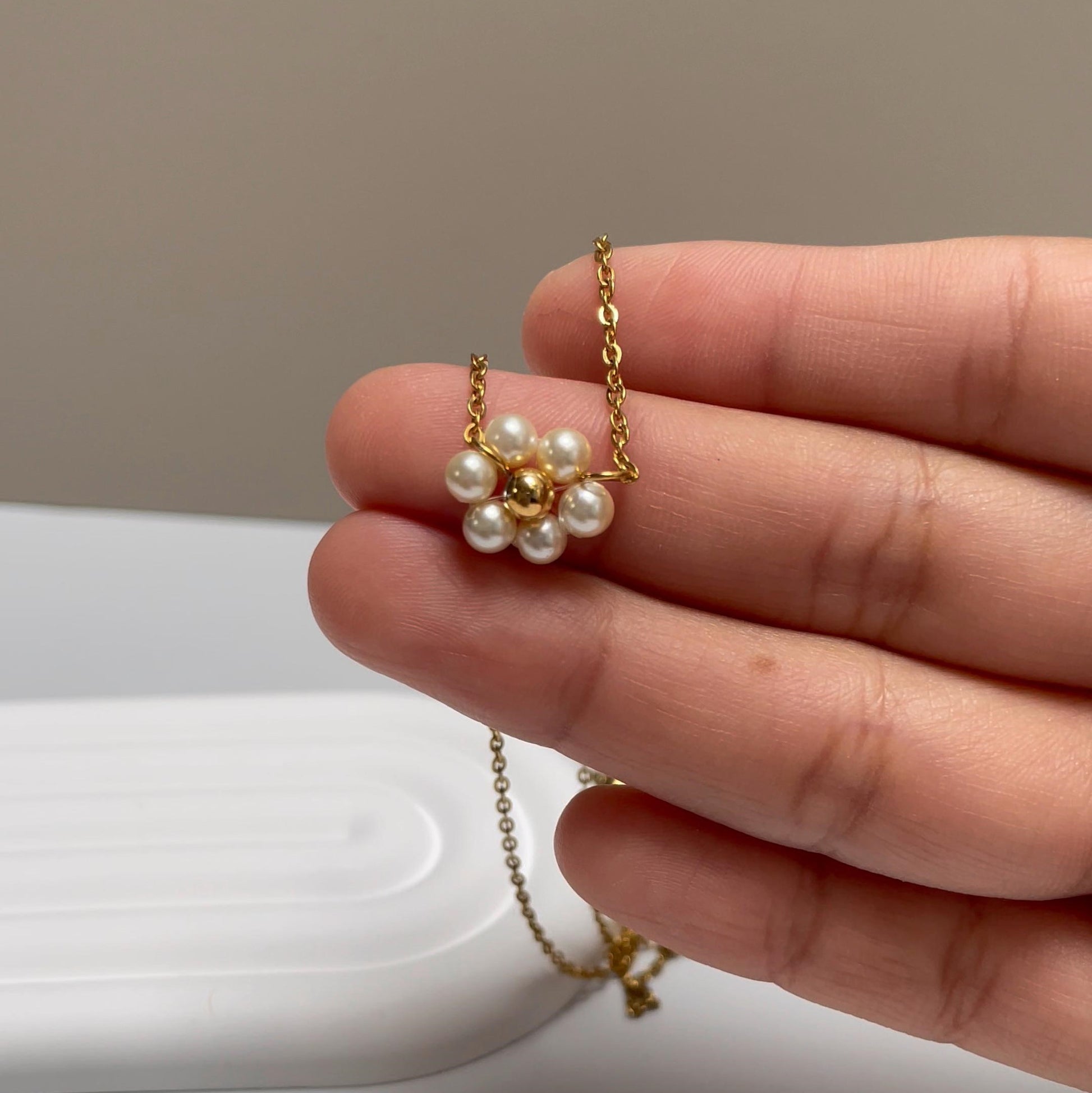 Bello y delicado collar con mini florcita hecha con perlas checas y billa de acero inoxidable.