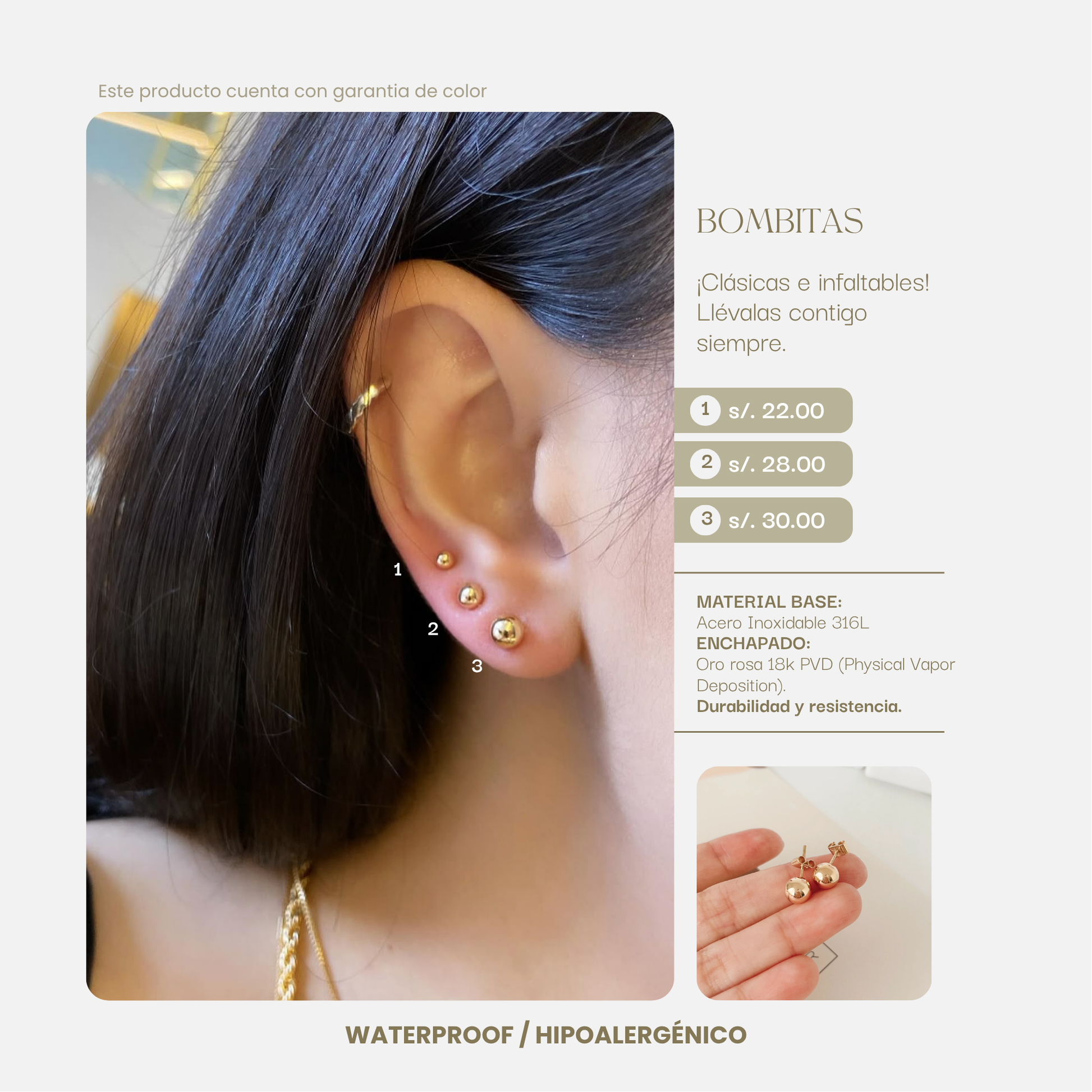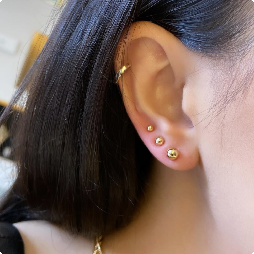 Delicadas y lindas. Bombitas en acero gold rosé de tamaño mini.